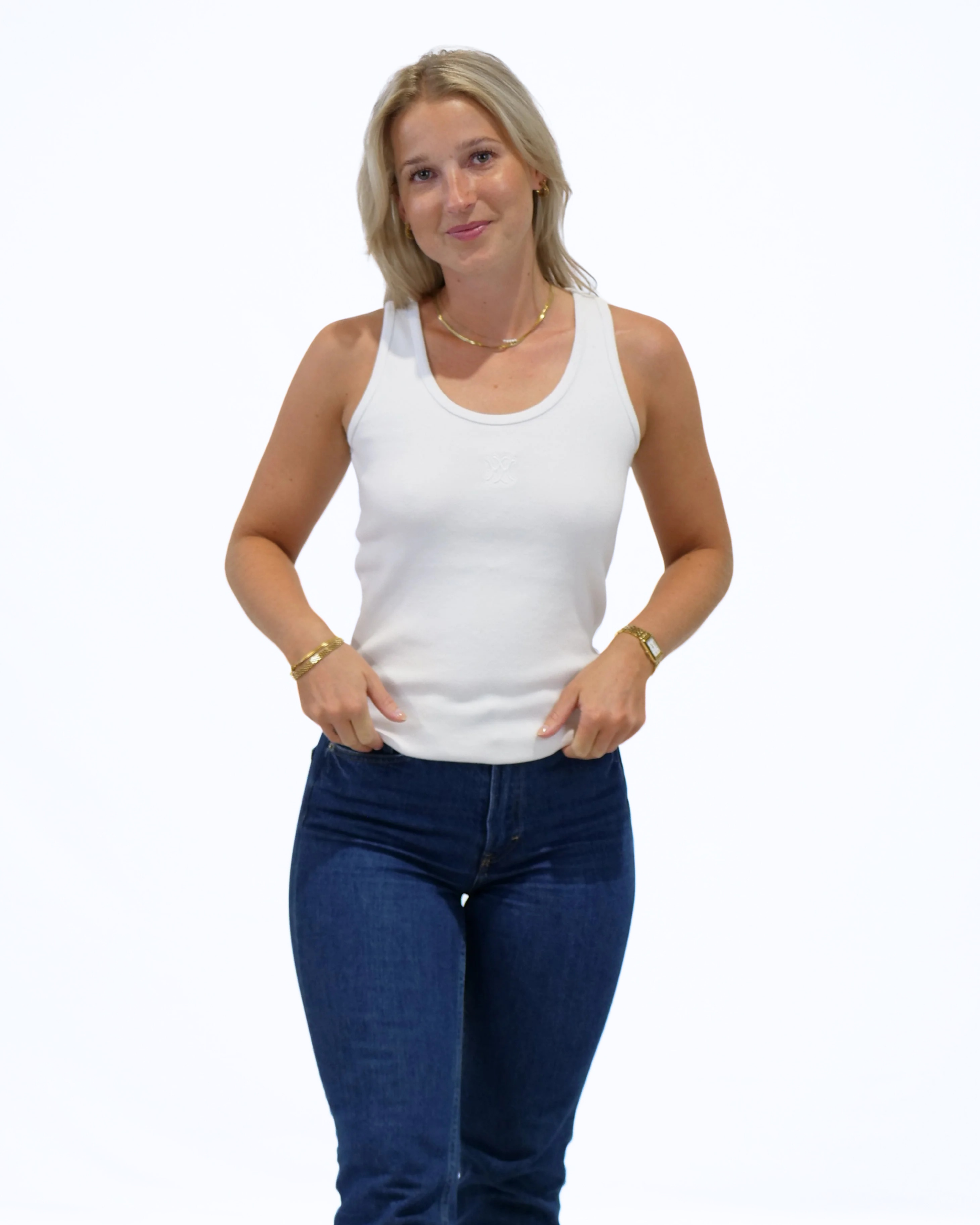 White cotton tank with white embroidery. Made in Portugal.